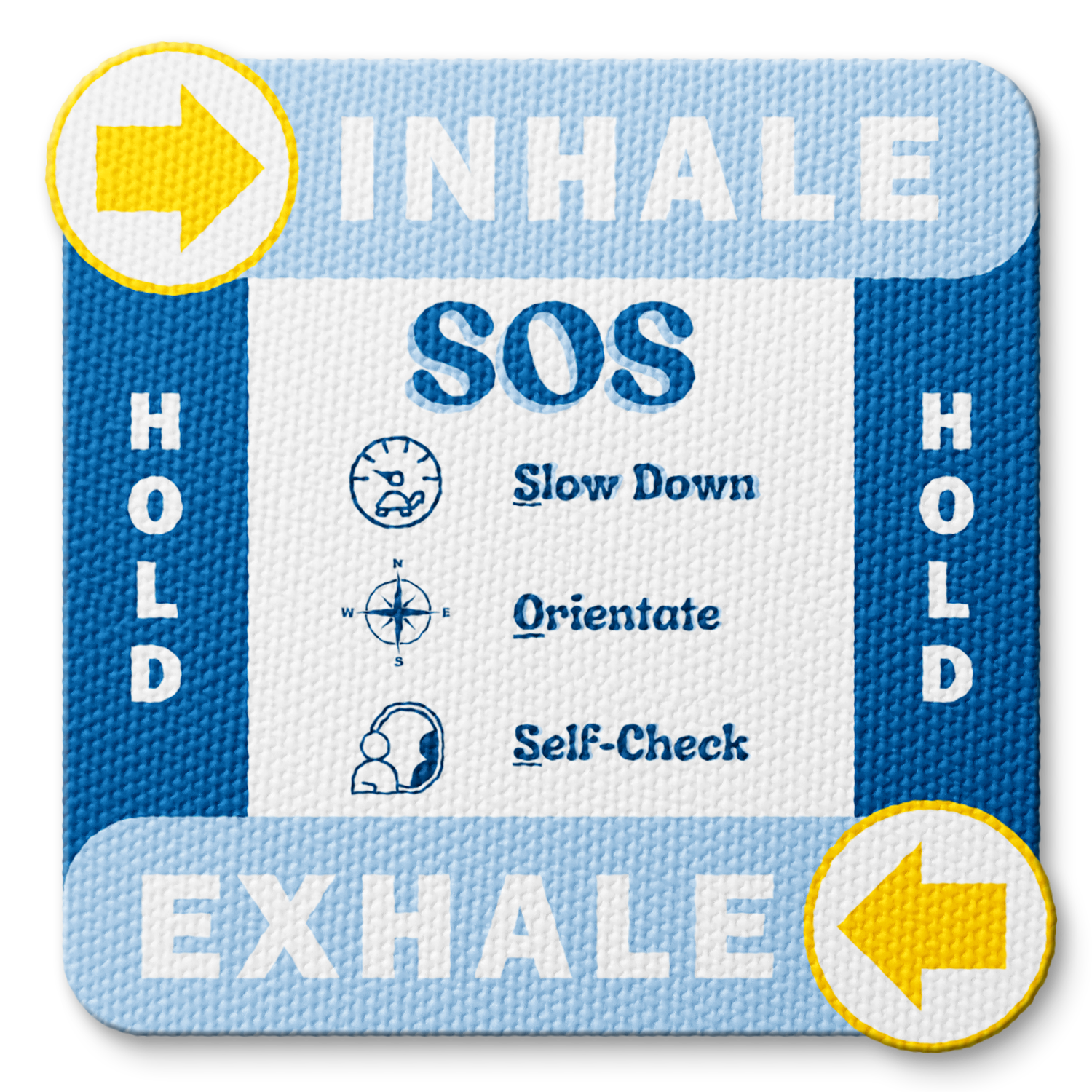 Designed to help calm the nervous system and improve focus, the visual prompts encourage a steady inhale-hold-exhale-hold rhythm. We make it yours by adding your logo, website, and branding, creating a personalized wellness tool perfect for your organization, clients, or students.