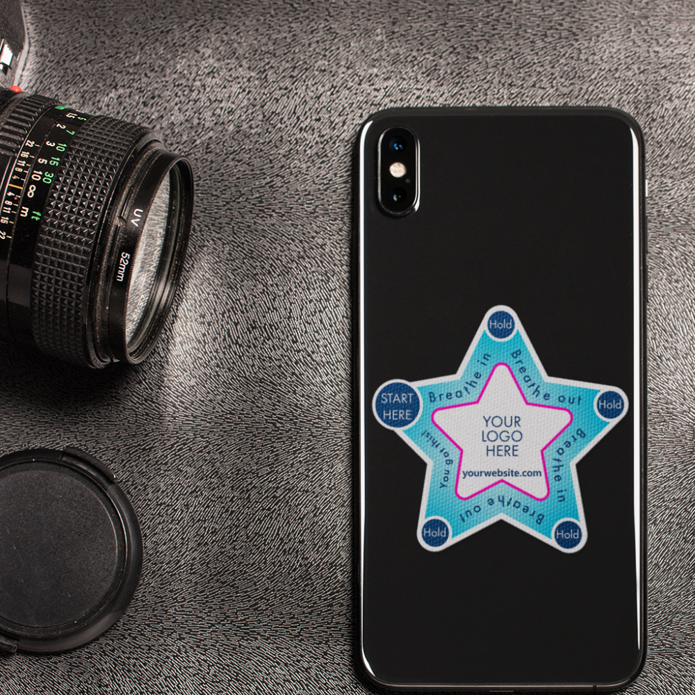 Tracing the continuous infinity loop helps guide a smooth inhale and exhale rhythm, promoting focus and relaxation. We personalize this effective tool by adding your logo and branding in the middle!